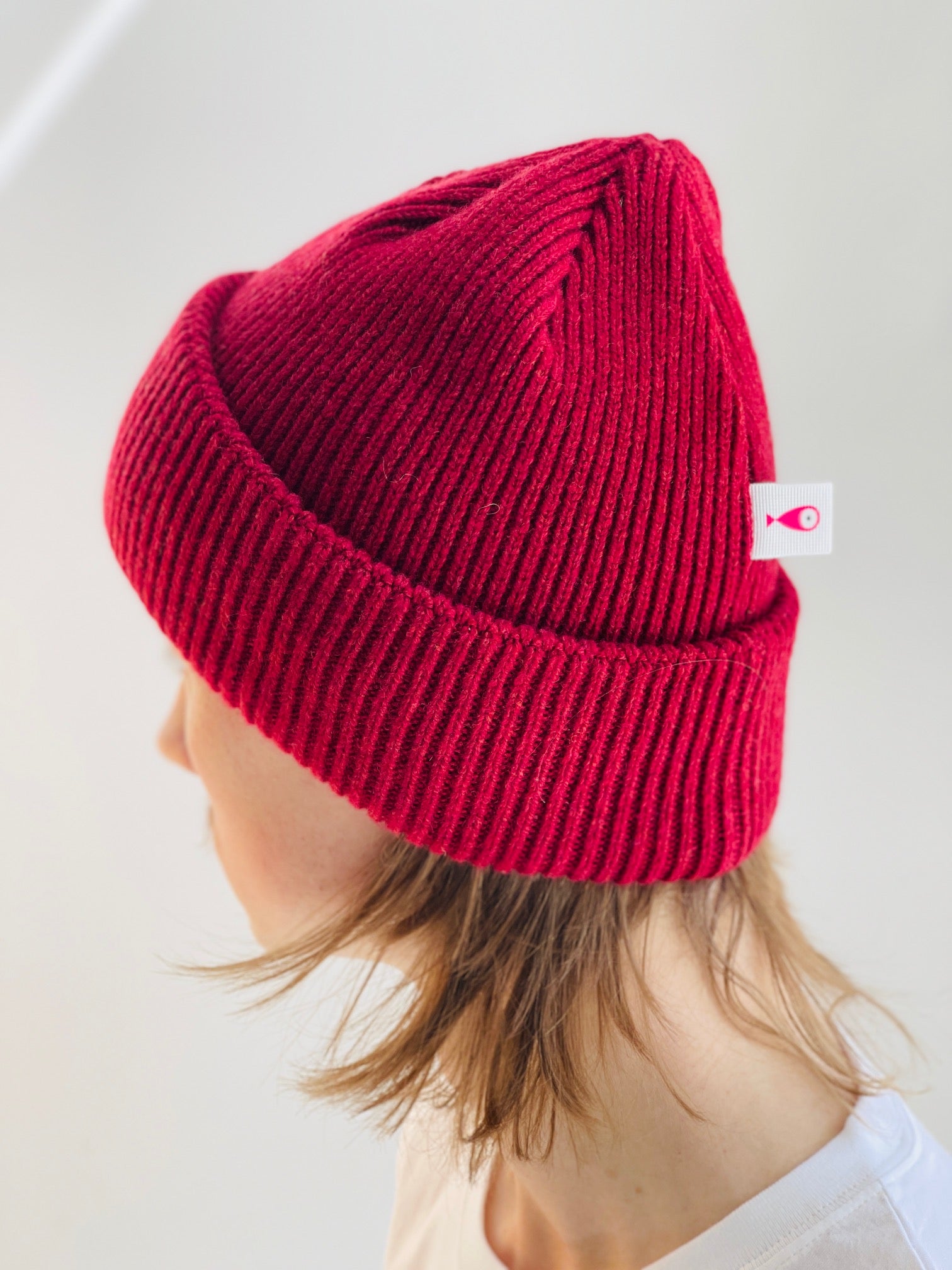 For an extra touch of flair, each beanie features a distinctive back label. The front of the label showcases a pink fish, turn the label around, and you'll find our logo discreetly placed on the back.